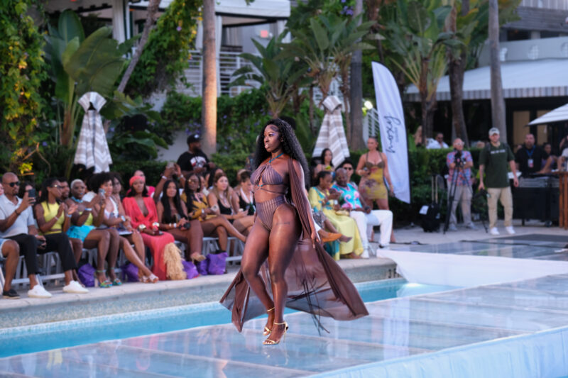 The collection delivered variety and vision—from goddess-like flowing kaftans and sleek long-sleeve one-pieces to cheeky two-pieces that radiated playful confidence. Each look was designed not only to flatter, but to empower.