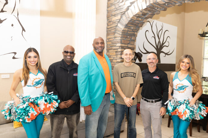 Miami Dolphins alumni Troy Drayton and members of the Dolphins cheerleading squad joined staff from both organizations to deliver the news in person, creating an emotional and memorable moment for Silva and his family.